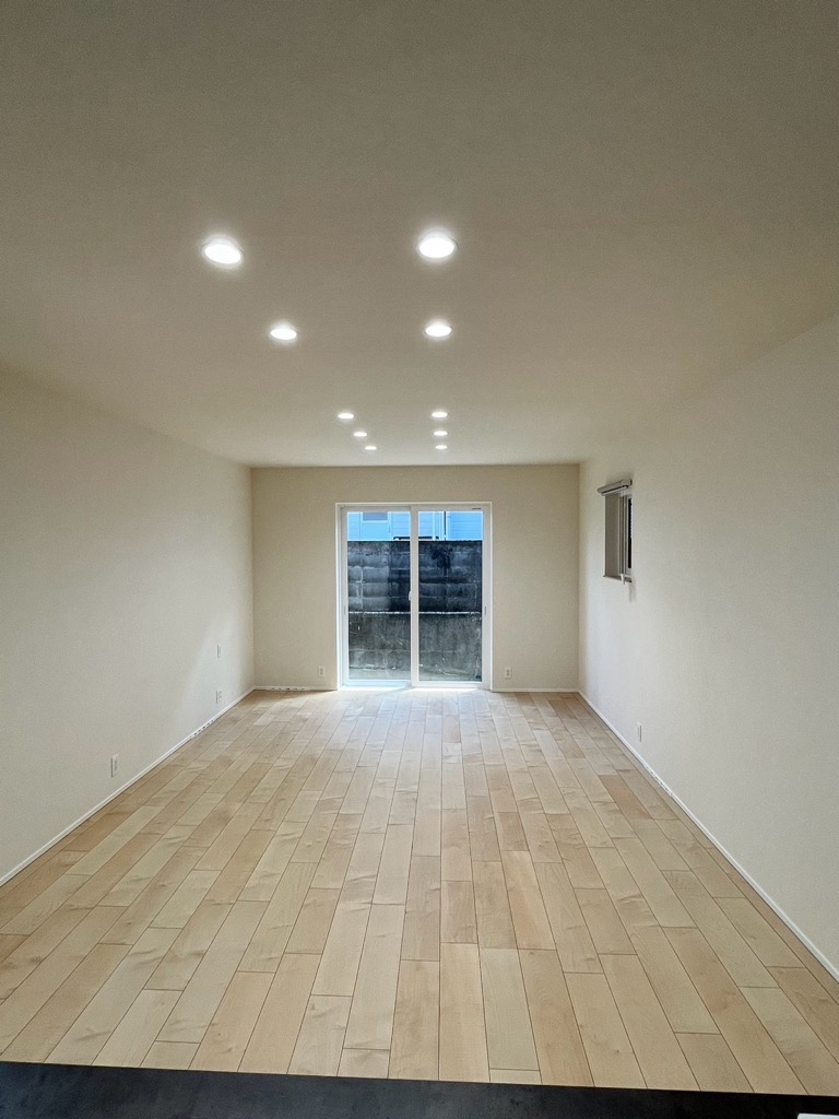 広々としたリビングは28畳あり、キッチン、ソファー、ピアノもゆったり置けて、家族が一緒に過ごせます。